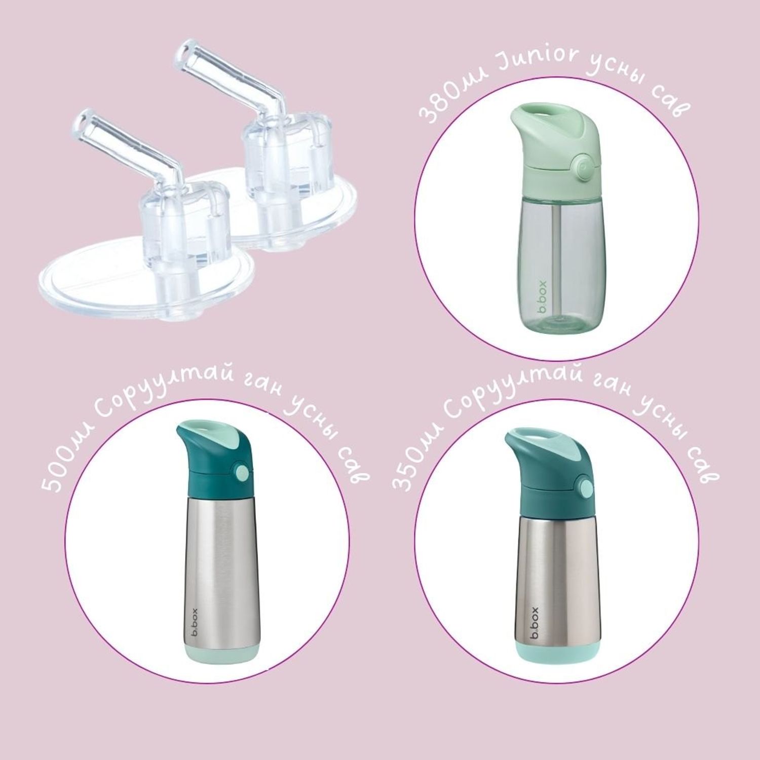 • Зөвхөн 350мл, 500мл соруултай ган усны сав болон 380мл Junior усны саванд зориулагдсан