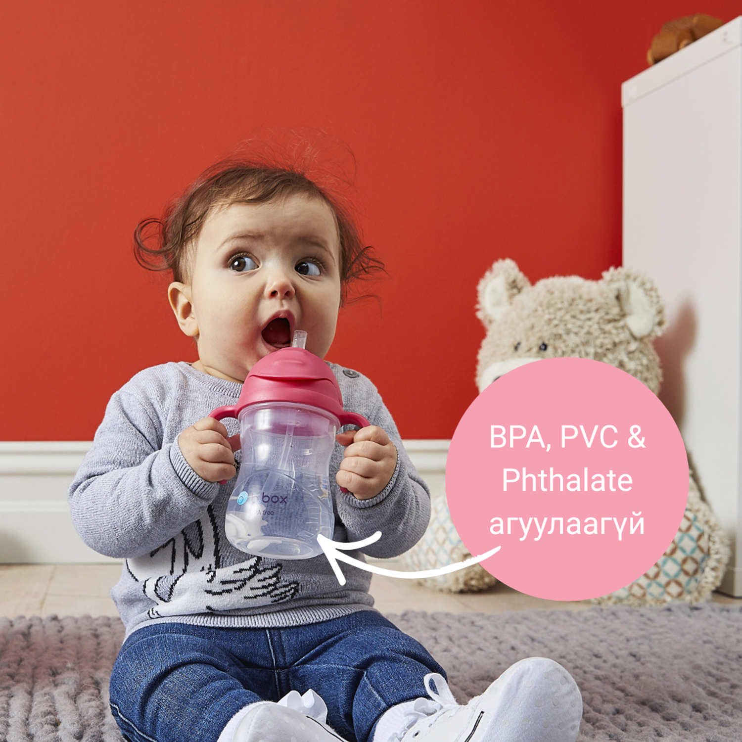 b.box брэндийн олон удаагийн шагнал хүртсэн алдарт соруултай, хүндрүүлэгчтэй аяга нь ямар ч өнцгөөс уухад тохиромжтой, хүүхдийн гаранд эвтэйхэн, өөрөө нээж хаахад хялбар байдаг нь хүүхдийг бие даан ус уухад тусална.
