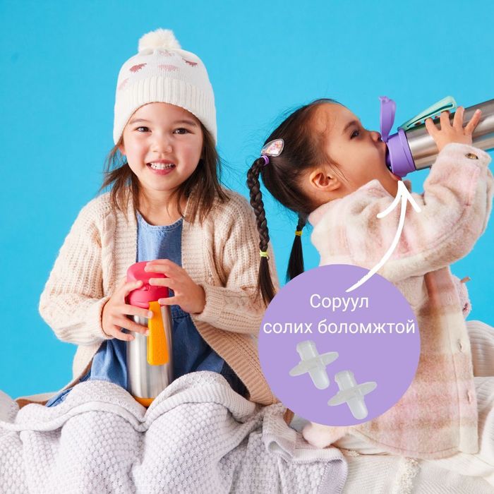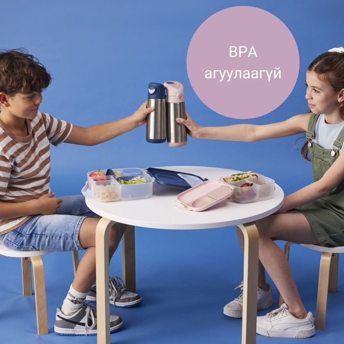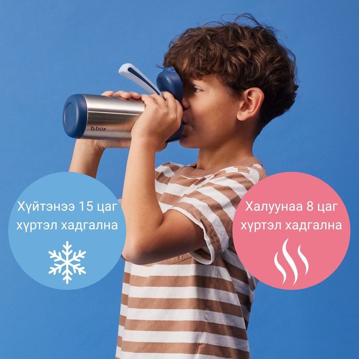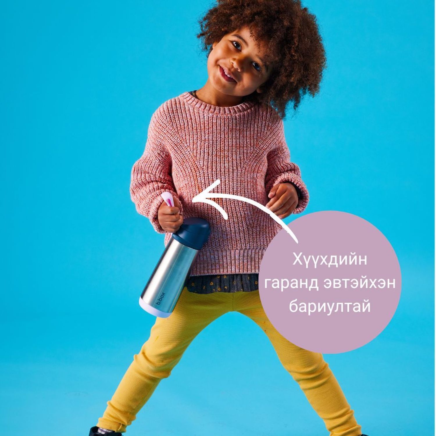 b.box брэндийн амсартай ган усны савны гурвалсан давхаргатай дулаан тусгаарлалт нь шингэнийг хамгийн тохиромжтой температурт хадгалах “супер” чадвартай! Силикон соруул нь уян зөөлөн тул хүүхдийн аманд эвтэйхэн, саадгүй уух боломж олгоно.